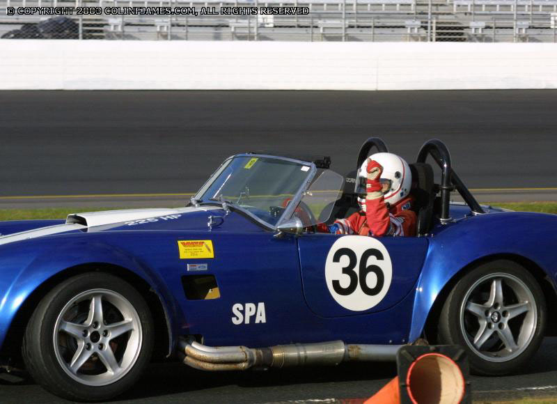Also during the open practice, I offered to let John Spain drive my Cobra. John and my brother Nate own a Miata which they are racing this season, but John's interested in getting a Cobra, so he was very glad to try my car. He loved it! He had a grin a mile wide when he got out of the car.