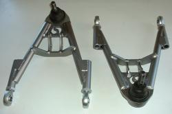 Having seen a Mustang which crashed heavily at Lime Rock a couple of years ago when its fabricated lower control arm had a weld failure at the inboard end, I also insisted on webs to support the tap tubes and ensure that they could not tear away from the main tubes on the A-arms under load.