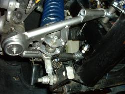 Incidentally, the fact that the rod ends allow some adjustment to the front track turned out to provide an unexpected benefit. With the rod ends all the way in, the arms are the same effective length as the stock arms. However, when I tried to get 2.5° camber and 6° caster, (remember that my upper control arms are now at the outer end of the slot, corresponding to a Mark II's outer hole) I didn't have enough adjustment on the upper control arms. To get the adjustment I wanted, the upper control arms would have needed shortening.