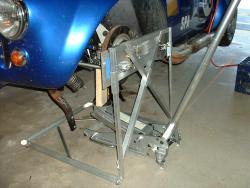 I also built a bump steer gauge, which allowed me to accurately check the bump steer after setting the caster. Since I was doing this with the spring/shock units out of the car (pretty much a necessity if you want to check bump steer), I also made some adjustable droop stops to hold the suspension at ride height level while the car was up on jack stands.