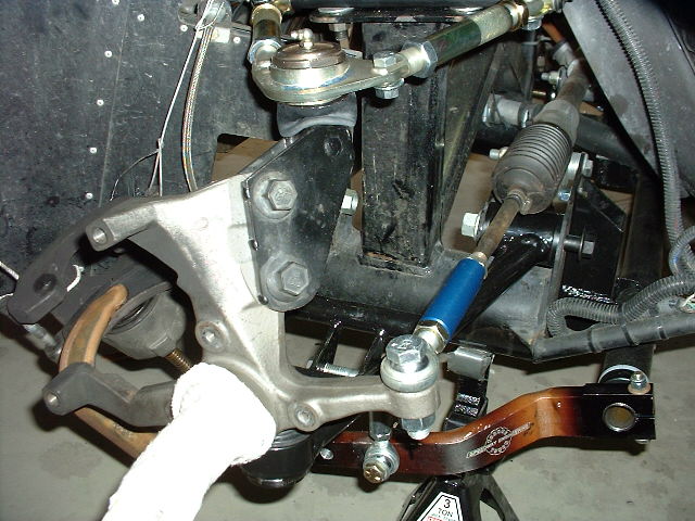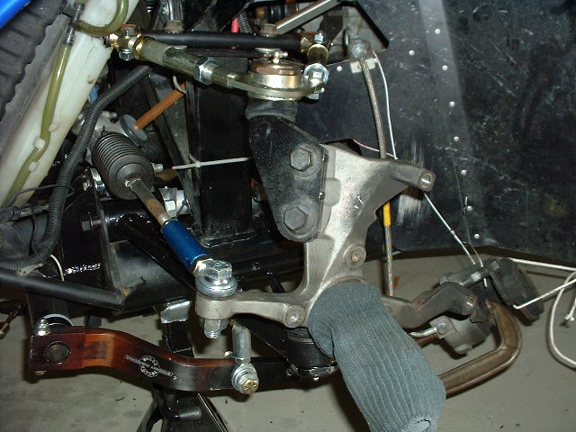 The blue anodized aluminum thingie is part of the FFR bump steer kit.
