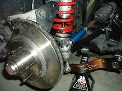 To get the bump steer right, we had to put the ball joint on the top of the control arm, and raise the steering rack by flipping the eccentric bushings we had previously used for mounting it.
