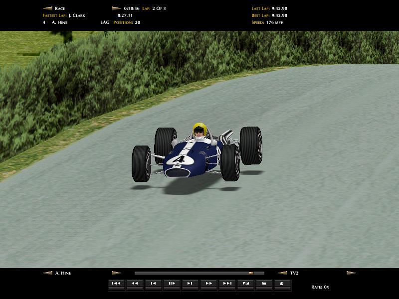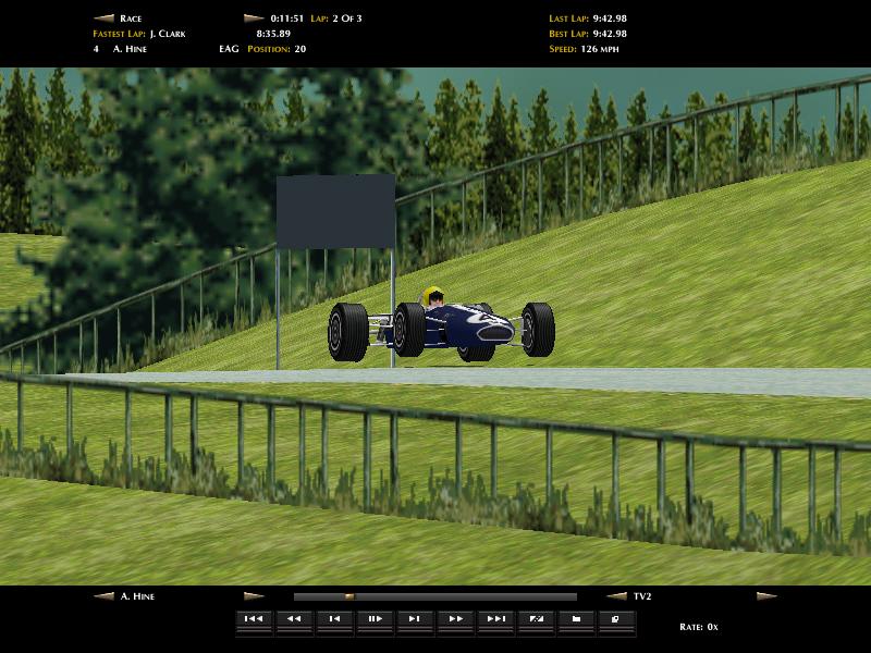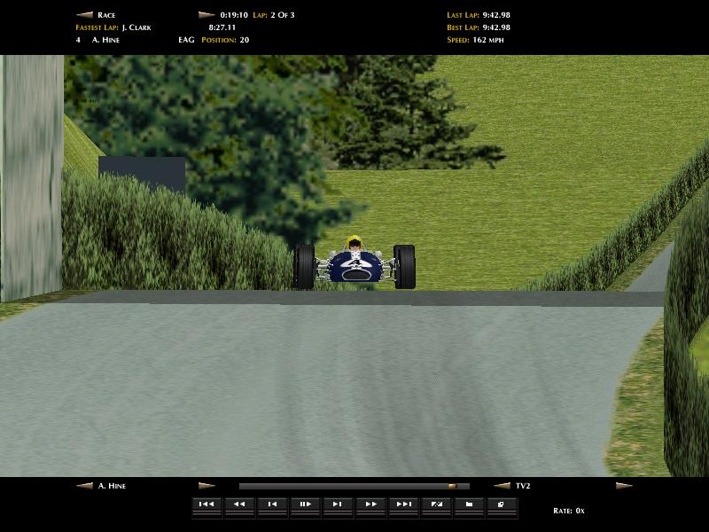 Note also that the speed figures I'm quoting are taken from the replay, which displays the car's speed in the upper right-hand corner. This can be configured by the user to display in either MPH or KPH.