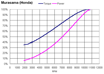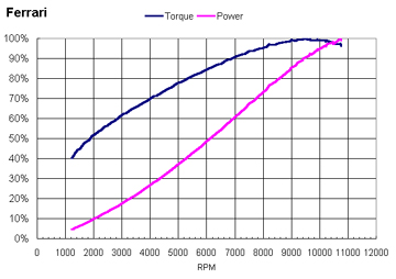 The following charts show engine torque and horsepower of each of the engines in GPL. The curves are shown as a percentage of the peak. These tables were generated from RPM data extracted from replays of the cars accelerating from rest on a level surface in a single gear. Torque and power are calculated based on the change in velocity between each frame.
