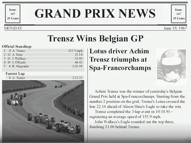 Newspaper report of one of the beta team's numerous online races