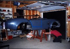 the sawhorses under the car.