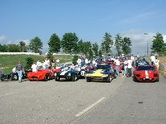 At right is a large gaggle of replicas, about to start the rally. |