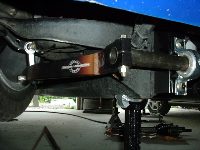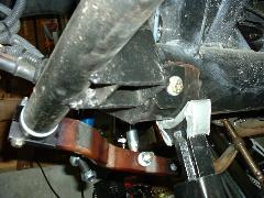 The drop link attaches to a hole in the rear of the lower control arm. This was expedient, but didn't give us our target roll stiffness.