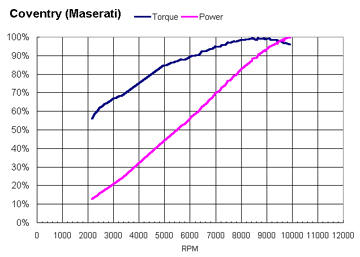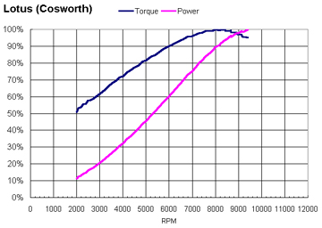The following charts show engine torque and horsepower of each of the engines in GPL. The curves are shown as a percentage of the peak. These tables were generated from RPM data extracted from replays of the cars accelerating from rest on a level surface in a single gear. Torque and power are calculated based on the change in velocity between each frame.